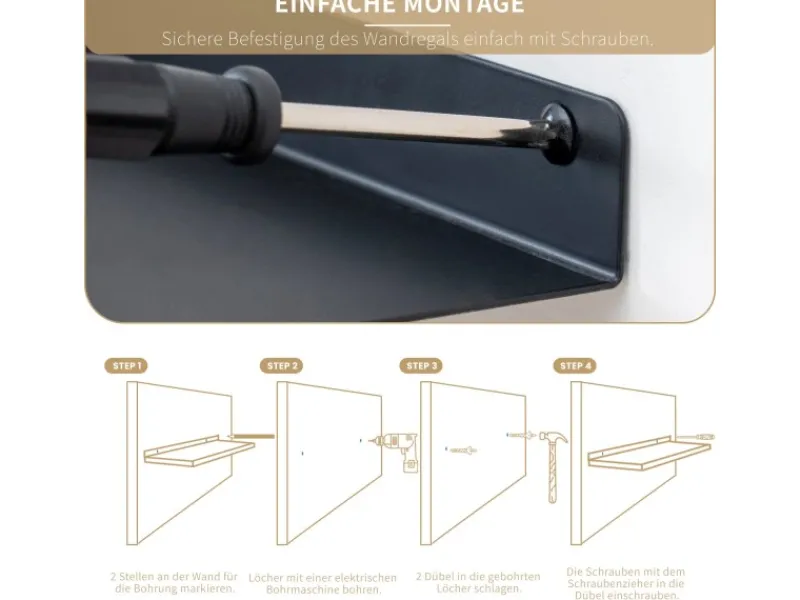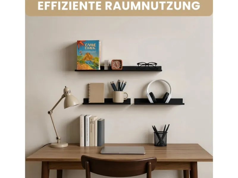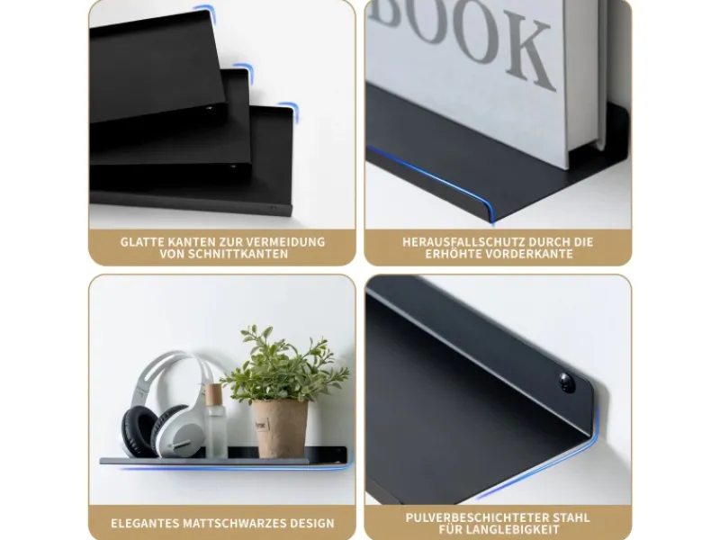 Dank des praktischen 3er-Sets lassen sich die Schweberegale flexibel einzeln oder im Set arrangieren – ganz nach deinem Platzangebot und Stil.