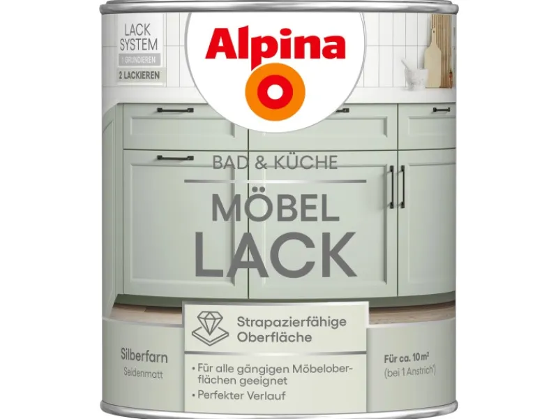 Nach der Grundierung mit Alpina Möbel-Grund Bad & Küche kann der Möbel-Lack auf nahezu allen gängigen Möbeloberflächen verwendet werden.