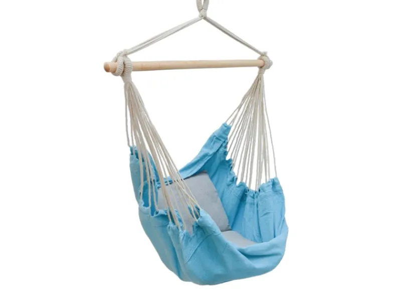 Stabiler Hängestuhl. Bis 120 kg belastbar, aus em Baumwollstoff, für drinnen und draußen.