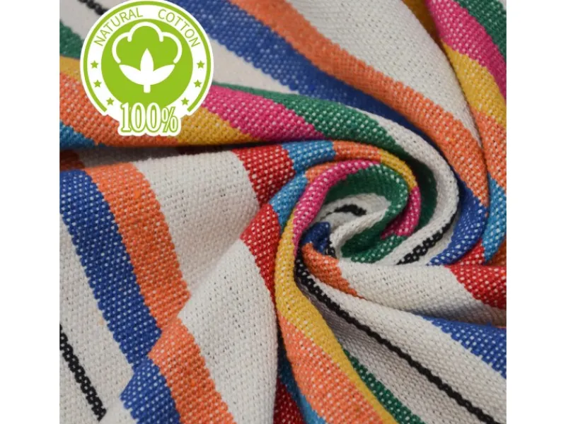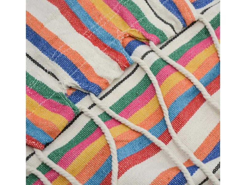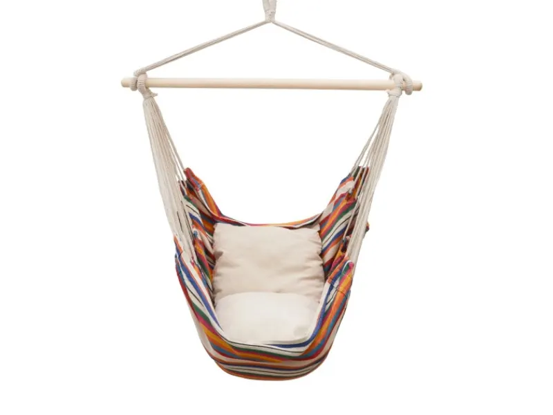 XL Balkon Hängesessel mit 2 Kissen, wendbar in Bunt gestreift & Beige, 37 x 37 cm, 100% Baumwolle.