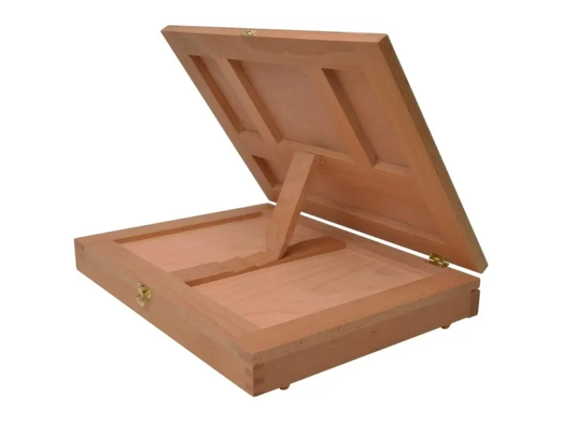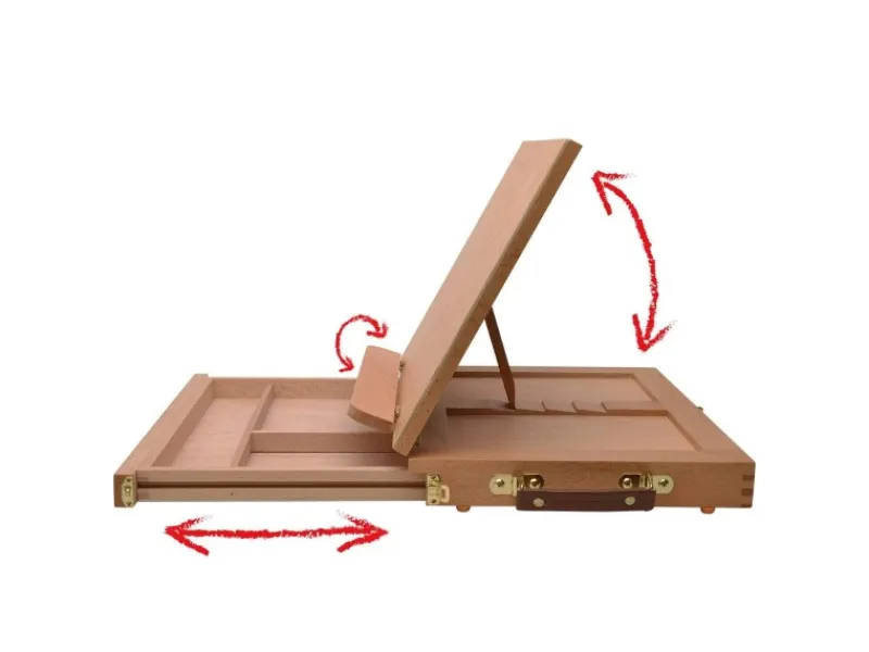 Artina Calais – Stabiler Malkoffer, Zeichenbrett, Tischstaffelei aus BucheDer Malkoffer Calais ist aus Buchenholz gefertigt und besitzt eine Holzmischpalette und ein Aufbewahrungsfach für Ihre Malutensilien.Verstellbarer NeigungswinkelBei dieser hochwertigen Tischstaffelei kann die Arbeitsfläche in fünf Stufen um 90° nach hinten geneigt werden und so der Neigungswinkel individuell angepasst werden.