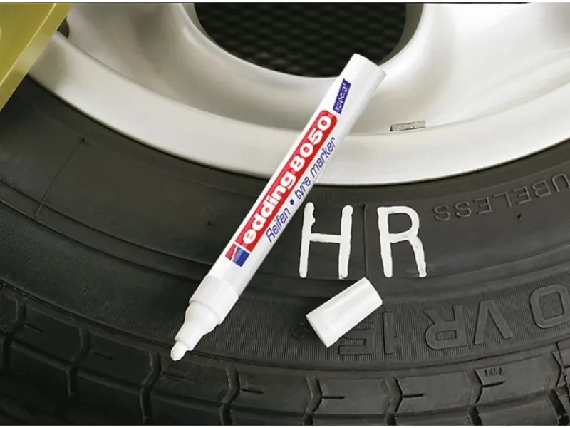 Die permanente, lackartig deckende Tinte ist ideal zur dauerhaften Kennzeichnung, Nachzeichnung und Markierung von Reifen, Reifenschriften sowie anderen Gummioberflächen.