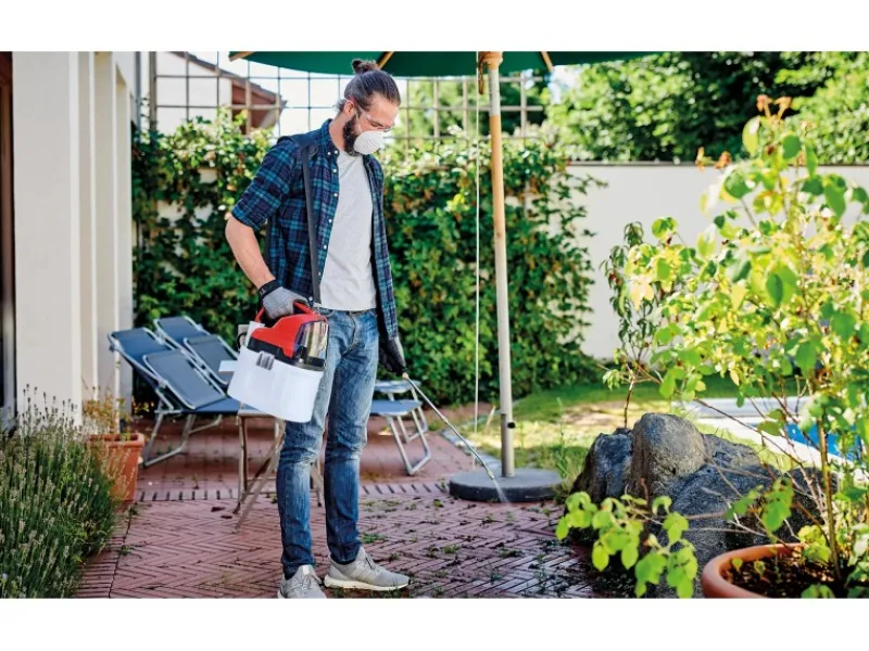 Das Einhell Akku-Drucksprühgerät GE-WS 18/75 Li-Solo gehört zur grenzenlos flexiblen Power X-Change-Familie: Jeder Akku der Reihe kann mit jedem PXC-Gerät kombiniert werden. Das Drucksprühgerät ist ein praktischer Helfer für ein sattes Grün im Garten und unterstützt beim gleichmäßigen Ausbringen von Pflanzenschutz-, Dünge- und Unkrautvernichtungsmitteln. Das Drucksprühgerät ist mit einer automatischen Pumpe ausgerüstet, die 2.5 bar umsetzt und damit bis zu 0.5 Liter pro Minute pumpt – ein manueller Druckaufbau ist nicht nötig. Eine Skala im transparenten Tank bietet auf den ersten Blick eine Füllstandskontrolle des 7.5 Liter-Tanks. Die großen Metallbügel am Tank sind zum einfachen Öffnen und Schließen konzipiert. Die Messingdüse zum Ausbringen ist individuell einstellbar, die teleskopierbare Sprühlanze besteht aus Edelstahl und ist mit einer arretierbaren Bedientaste ausgestattet. Der gepolsterter Tragegurt sorgt für ein bequemes Tragegefühl und ermüdungsfreies Arbeiten. Die Abdeckung des Akkus bietet Schutz vor Spritzwasser. Akku und Ladegerät sind separat erhältlich, beispielsweise als praktisches Starter-Set.