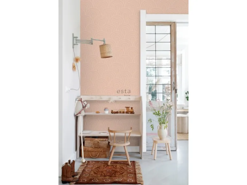 Diese schöne Tapete mit Art Decó Muster in Pfirsichrosa verleiht jedem Wohnraum einen frischen Look. Diese Tapete kann mit vielen Stilen und Farben kombiniert werden und das macht diese Tapete zu einem absoluten Must-Have. Maße, Rapport und Musterversatz Die Maße dieser Tapete sind 53 cm x 10. 05 m (Breite x Länge). Der Rapport ist 26. 5 (gerader Ansatz). Das heißt, dass das Motiv sich alle 26. 5 cm wiederholt und das Muster der einzelnen Tapetenbahnen auf gleicher Höhe geklebt werden muss.Tapezieren Das Anbringen dieser Vliestapete ist einfach und unkompliziert: nachdem der Vlies-Kleister direkt auf die Wand aufgebracht wurde, kann die Tapete angesetzt und anschließend glattgestrichen werden. Eventuelle Überstande können mit einem Cuttermesser entfernt werden. Beim Tapezieren wird kein Tapeziertisch benötigt und die Tapete ist auch nach Jahren restlos trocken abziehbar. Für das beste Tapezierergebnis empfiehlt ESTAhome den professionellen Wallpro PRO-301 Tapetenkleister. Vorbereitungstipp: Verhindere Probleme mit der Haftung deines Tapeten, indem du vorher testest, ob deine Wandoberfläche stark saugend ist. Nimm dazu einen feuchten Schwamm und befeuchte einen kleinen Teil der Wand. Wenn der feuchte Bereich innerhalb weniger Sekunden verschwindet, ist die Wand sehr saugfähig. In diesem Fall empfehlen wir, ein Grundiermittel zu verwenden, um die Saugfähigkeit zu verringern. ESTAhome empfiehlt hierfür die WALL PRO-401 Tapetenprimer.Sofort startklar! Am einfachsten ist es, direkt auch der benötigte Tapetenkleister und ein Wallpro PRO-933 Tapezierset zu bestellen. Dieses Tapezierset enthält alle Tapezierwerkzeuge, die beim Tapezieren von Vliestapeten benötigt werden. Diese Artikel können über das Suchfenster auf der Amazon Seite schnell gefunden und bestellt werden. So wird das Tapezieren zum Kinderspiel!