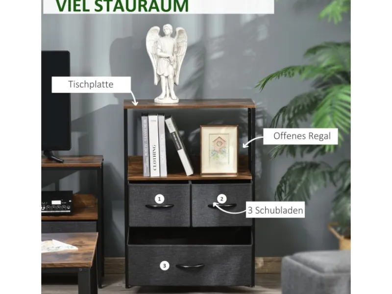 ● Schubladen mit Leinenoptik der Kommode können herausgenommen und gefaltet werden. Mit Griff zum Öffnen und Schließen