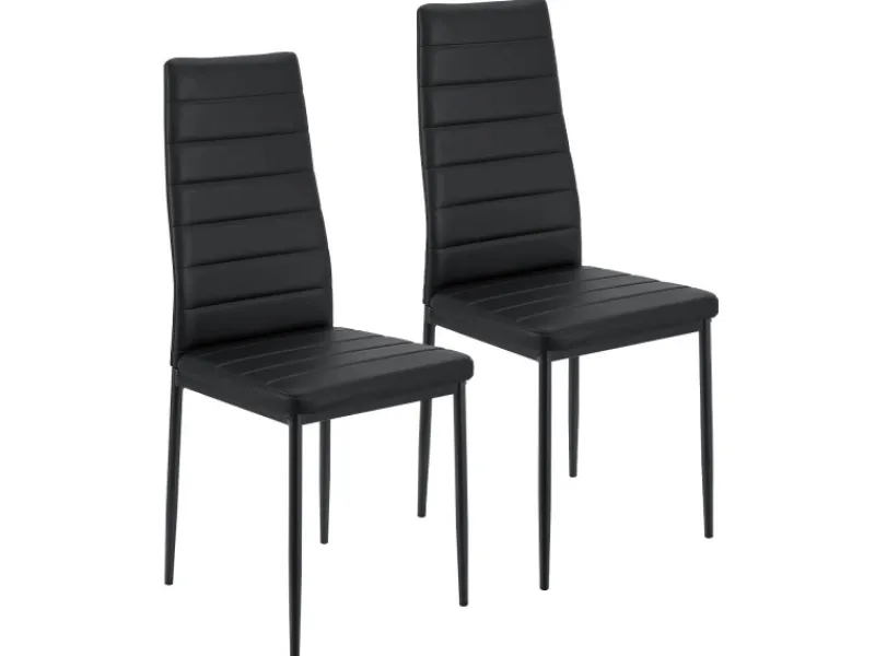 Das Gestell aus stabilem Stahl sorgt für eine hohe Belastbarkeit der Esszimmerstühle. Der Bezug aus PVC macht sie zusätzlich pflegeleicht und robust im Gebrauch.