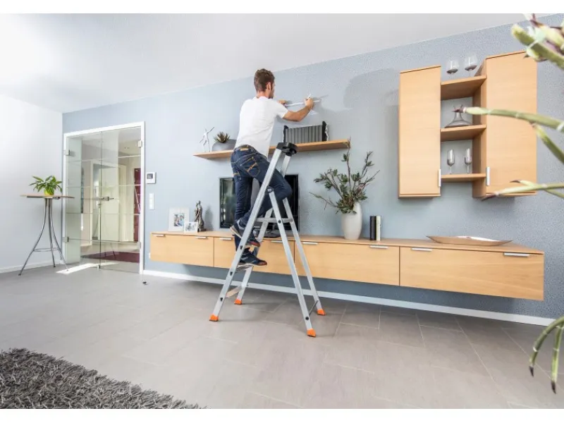Die hochfest verbördelte Stufen- und Holmverbindung steht für besondere Stabilität und Widerstandsfähigkeit. Große, profilierte und bodenschonende Fußkappen sorgen für festen Halt auf verschiedenen Untergründen und schützen gleichzeitig den Bodenbelag.