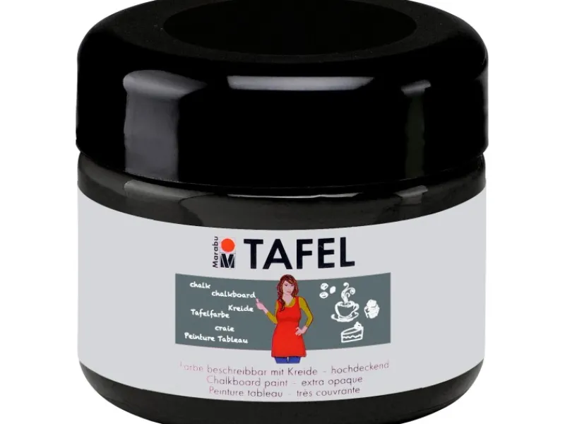 Mit Marabu Tafel bemalte Flächen sind nicht nur schön, sondern auch noch funktional. Die deckende Acrylfarbe auf Wasserbasis ist nach dem Trocknen mit Tafelkreide beschreib- und mit Wasser abwischbar. Neben Wohnwänden lassen sich mit der wasserfesten und lichtechten Farbe vielfältige weitere Untergründe wie Holz, MDF, Metall, Papier und Keilrahmen problemlos umfunktionieren. Kombiniert man Marabu Tafel mit Marabu Magnet erhält man ein multifunktionales Memo-Board, auf dem nicht nur mit Kreide kleine Botschaften hinterlassen werden können, sondern auch wichtige Unterlagen mit Magneten ihren Platz finden.