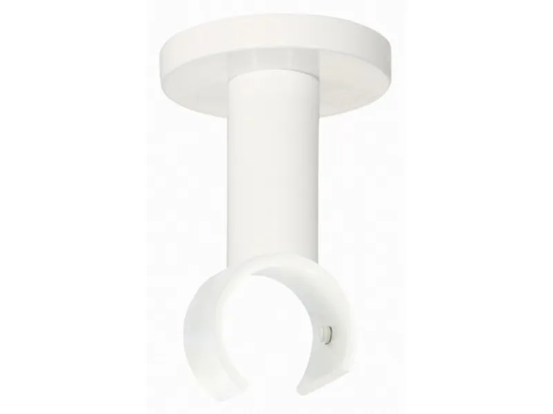 Die Deckenhalterung besticht durch ihr formschönes Design dank versteckter Verschraubung. Mit diesem Träger können Sie mühelos und sicher Ihre Gardinenstangen an die Decke montieren und den Raum individuell nach Ihrem Geschmack gestalten. Zur Anbringung der Vorhangstangen benötigen Sie zwei Träger. Die in Weiß gehaltene Deckenhalterung lässt sich optimal mit gleichfarbigen Garnituren kombinieren.