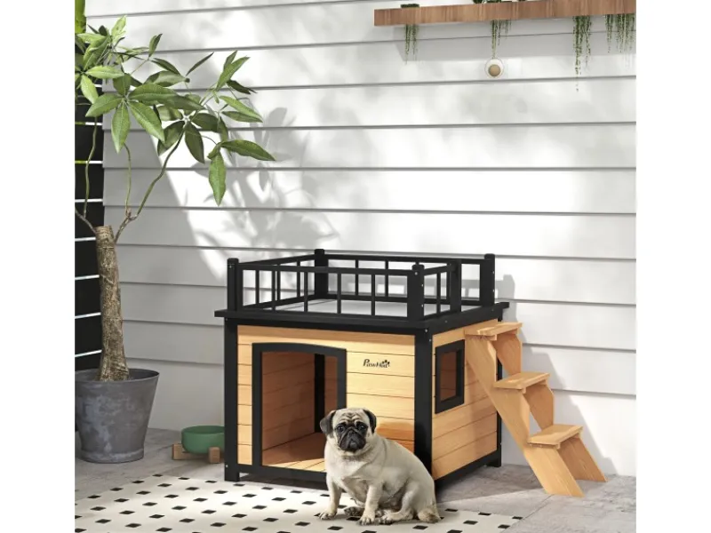 Best PawHut Hundehütte mit Balkon 121 x 77 x 78 cm