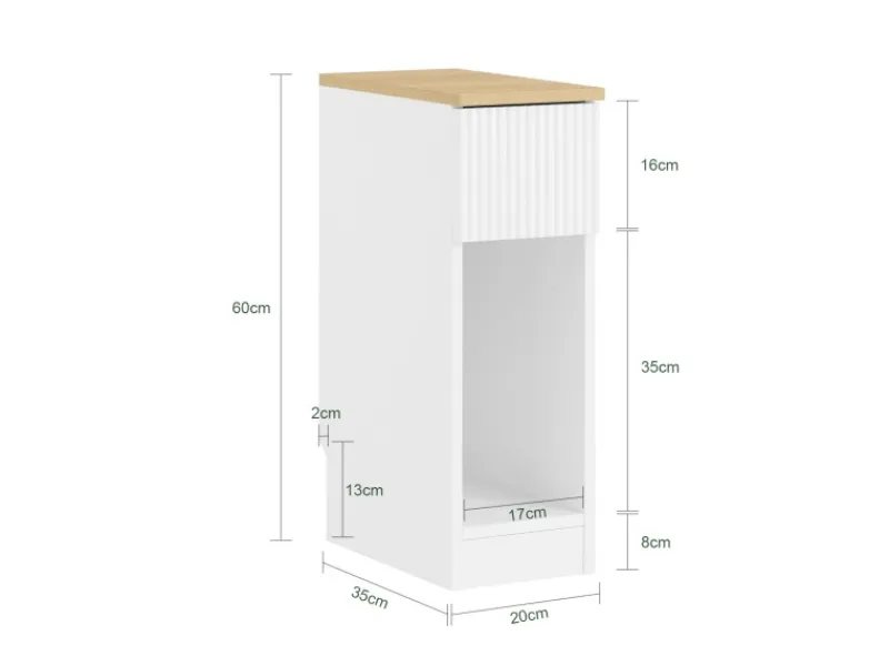 Mit einer Breite von 20cm eignet er sich ideal für Schlafzimmer, Wohnzimmer und kleine Ecken.