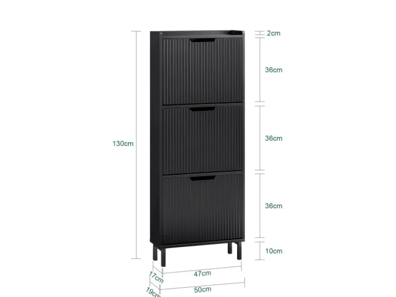 Mit den 3 Klappfächern können Sie ganz frei Schuhen in verschiedenen Größen und Formen aufbewahren.