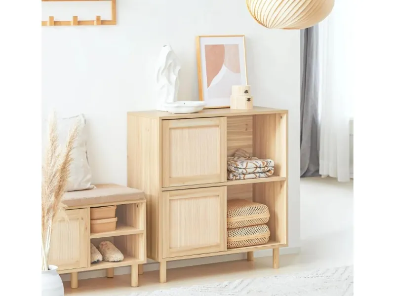 Die zwei Schiebetüren aus Bambus fügen diesem Schrank eine stillvolle Note hinzu und helfen Ihnen, benötigte Gegenstände mühelos herauszunehmen.