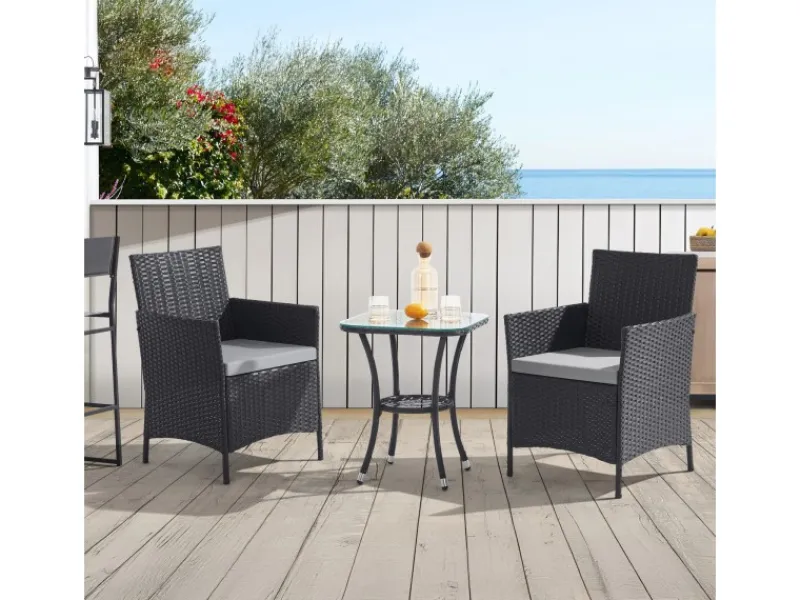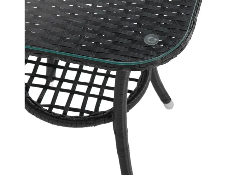Der praktische Beistelltisch mit Glasplatte hält Getränke und Snacks stets griffbereit, während das kompakte Design der Sitzgruppe für maximale Gemütlichkeit sorgt, ohne viel Platz zu beanspruchen.