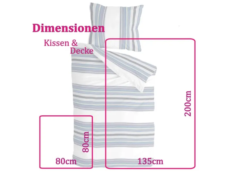 LIEFERUMFANG – Bettwäscheset bestehend aus einem Bettbezug in 135×200 cm und einem Kissenbezug in 80×80 cm. Passende Daunendecken, Federdecken, 4-Jahreszeitenbetten normale Mikrofaser Polyesterdecken finden Sie in unserem Sortiment.
