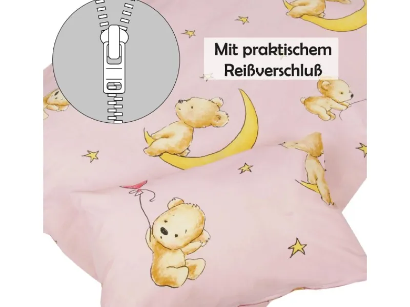 2-TEILIGES SET: Ein Kissenbezug 40×60 cm mit Reissverschluß, ein Bettbezug 100×135 cm mit Reissverschluß. Aus 100% reiner Baumwolle. Atmungsaktiv, pflegeleicht und waschbar und frei von Allergenen und Reizstoffen.