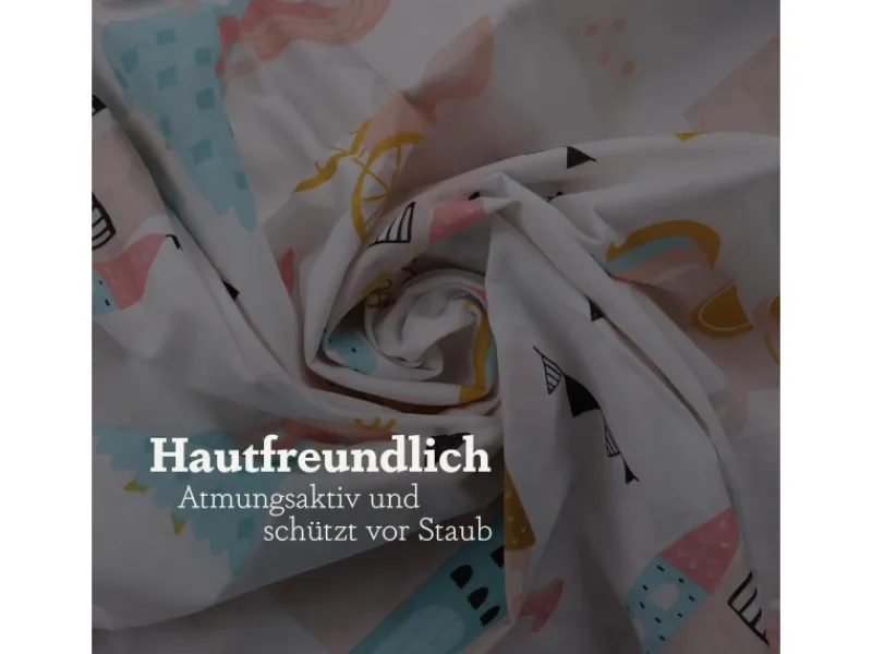 BLICKFANG – Unsere Bettwäsche 100 % Baumwolle ist auf die besonderen Ansprüche sensibler Baby und Kinderhaut abgestimmt. Die schönen verschiedenen Motive machen die bequeme Bettwäsche zu einem echten Blickfang in jedem Kinderzimmer und zum idealen Geschenk.