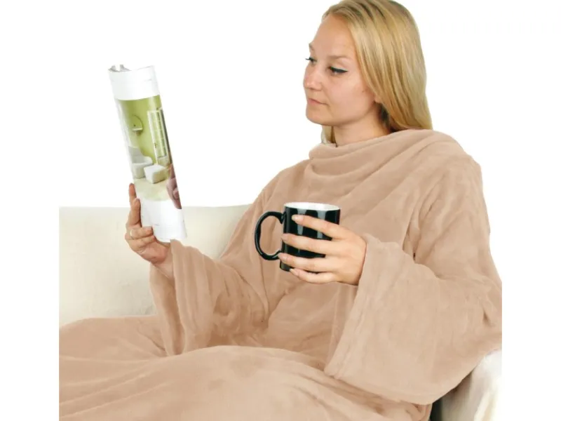 Bei den Maßen 130 x 180 cm ist die Decke groß genug für den ganzen Körper und die eingesetzen Ärmel haben eine Länge von 68 cm und bewahren die Decke bequem vor dem lästigen Runterrutschen.