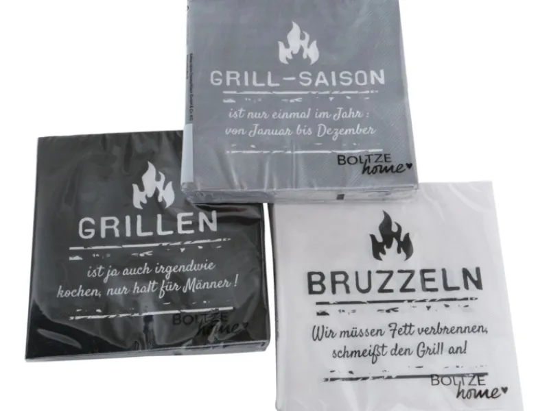 Die Boltze Servietten sind in drei verschiedenen Sortierungen erhältlich. Die Sortenauswahl erfolgt zufällig, was sicherstellt, dass jeder Kunde eine Überraschung beim Auspacken erlebt.