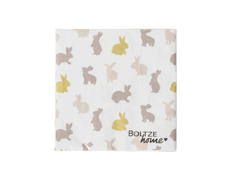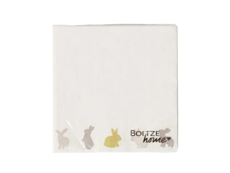 Die Servietten Tinka von Boltze Home bringen charmante Eleganz auf Ihren Tisch. Mit einem süßen Hasenmotiv in Beige, Gold und Grau fügen sie sich stilvoll in Ihr Esszimmer oder Ihre Küche ein. Das Set enthält 20 Papierservietten im praktischen Quadratformat, die sowohl für festliche Anlässe als auch für den täglichen Gebrauch ideal geeignet sind.