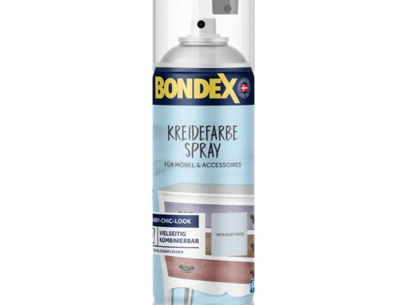 Bondex Kreidefarbe Spray ist eine dekorative ultramatter Lack für Shabby-Chic Lieblingsmöbel und Accessoires im Innenbereich. Einfacher und schneller Farbauftrag: Schütteln und Sprühen. Das Spray ermöglicht einen einfachen Farbauftrag selbst an schwer zu erreichenden Stellen. Trocken in nur einer Stunde.