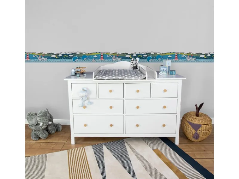 Schreibe die erste Bewertung für „Bricoflor Kinderzimmer Bordüre Maritim mit Walen Babyzimmer Tapeten Bordüre in Blau Selbstklebend Vlies Kindertapete mit Leuchtturm für Jungen“