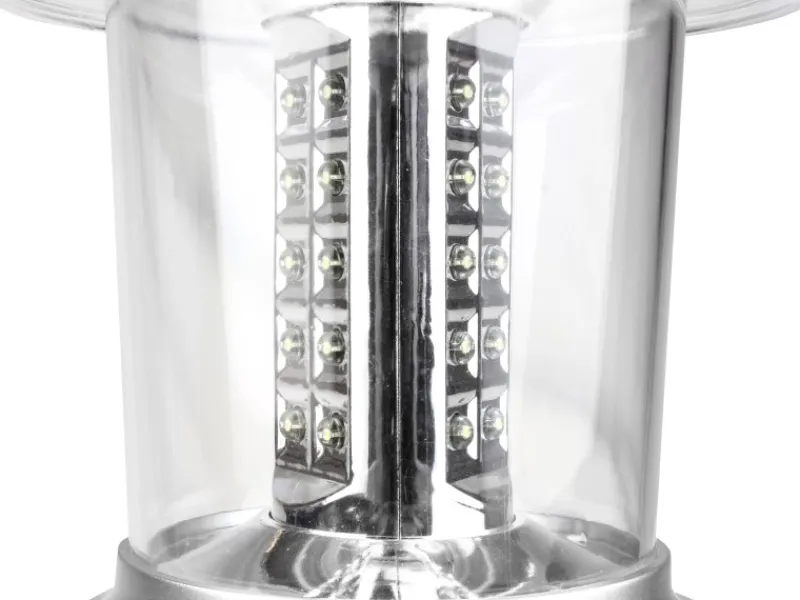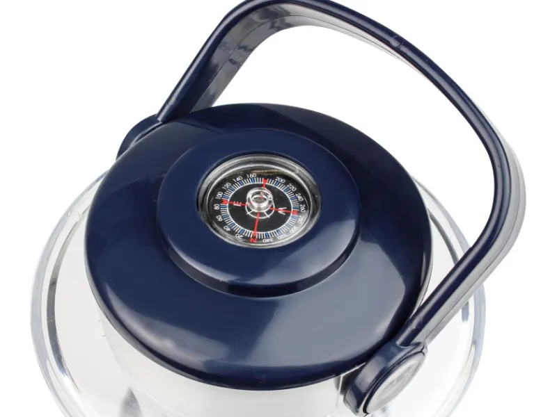 Ein praktischer Tragegriff erleichtert den Transport und ein eingebauter Kompass hilft bei der Orientierung. Die Laterne hat eine Größe von ca. 12,5 cm x 12,5 cm × 21 cm und benötigt 3 D Batterien, die jedoch nicht im Lieferumfang enthalten sind.
