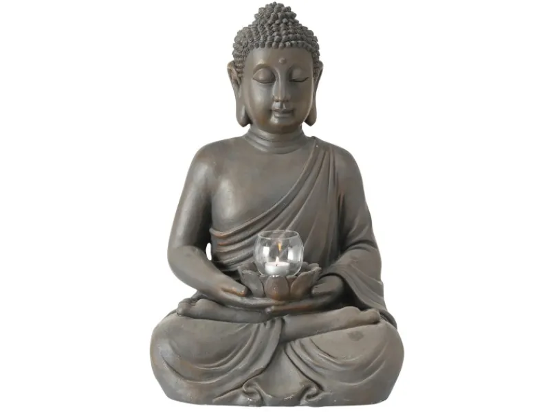 Jedes Stück des Windlichts Buddha ist handgemalt, was ihm eine einzigartige, individuelle Note verleiht. Ideal für entspannende Momente, fügt sich das Windlicht harmonisch in verschiedene Wohnstile ein und sorgt für eine warme, einladende Lichtstimmung.