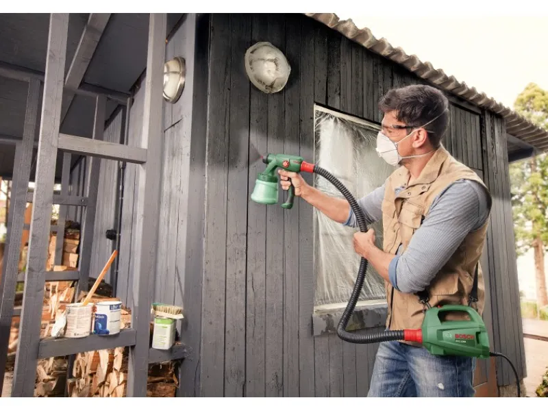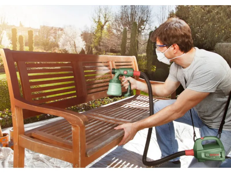 Das Bosch Feinsprühsystem PFS 1000 ist ein anwenderfreundliches Farbsprühsystem für Holzfarben. Noch nie waren Lackier- und Streicharbeiten so einfach. Der Auftrag von Lacken und Lasuren gelingt mit dem Farbsprühsystem PFS 1000 von Bosch im Handumdrehen. Vergessen Sie Pinsel und Farbroller, sprühen Sie schnell und mühelos alle Arten von Holz- und Metallfarben auf die gewünschte Oberfläche ohne Kleckse oder Tropfen. Mit dem präzisen und regulierbaren Farbstrahl arbeiten Sie sauber und stressfrei. Ob Sie lackieren oder ölen wollen, mit dem Farbsprühsystem PFS 1000 ist Ihr Projekt im Nu erledigt.