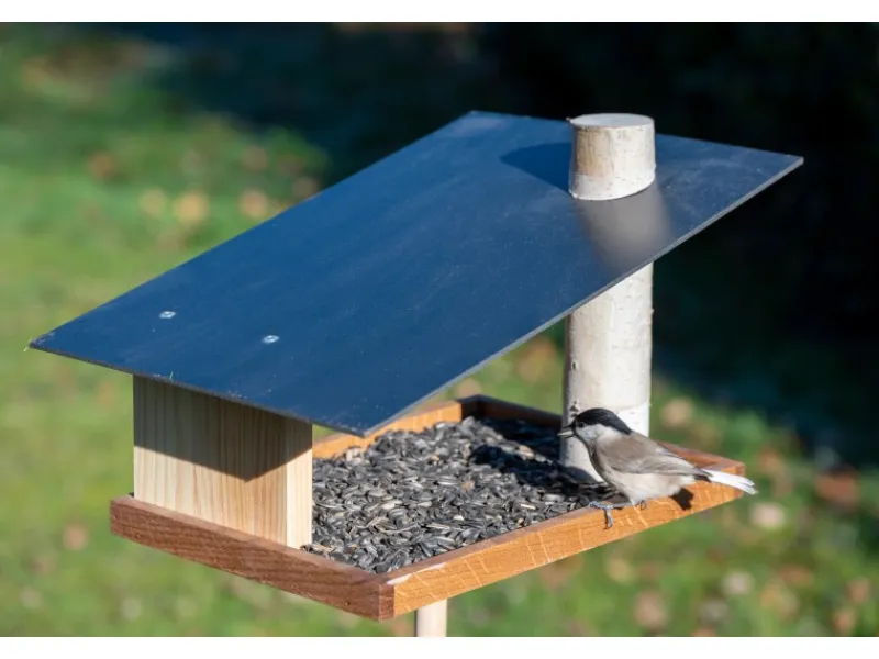 Die Herstellung in europäischer Produktion erfolgt in Handarbeit mit Fokus auf bester Qualität in der Verarbeitung. Die Außenmaße der Vogelfutterstation sind ca. 35 cm x 24 cm x 22 cm bei einem Gewicht von ca. 1,3 kg.