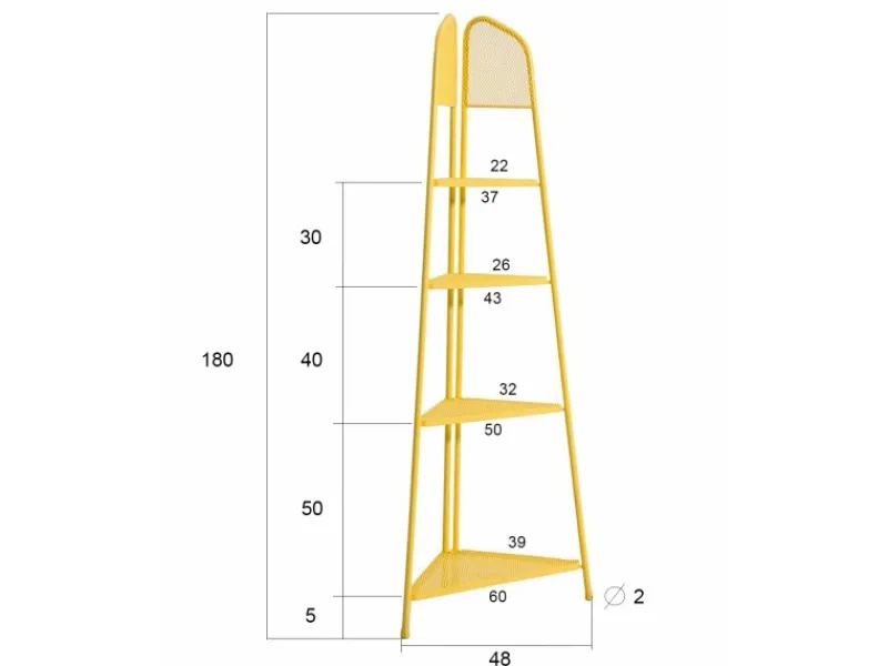 Die gelbe farbe verleiht dem Regal eine zeitlose Eleganz und sorgt für eine ruhige und harmonische Atmosphäre in Ihrem Raum, ohne aufdringlich zu wirken. Dieses Eckregal passt perfekt in Wohnzimmer, Schlafzimmer, Arbeitsbereiche oder Flure. Sie können es alleine verwenden oder mit anderen Möbelstücken kombinieren, um einen beeindruckenden Gesamteindruck zu erzielen.
