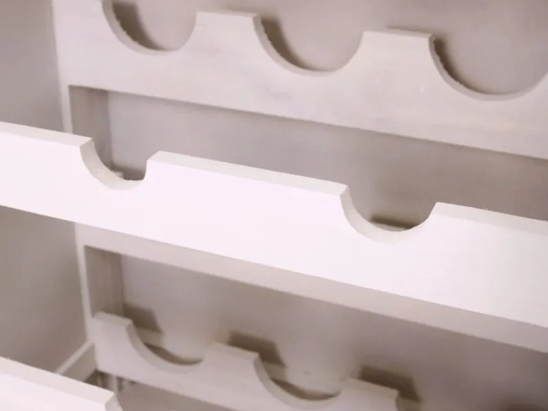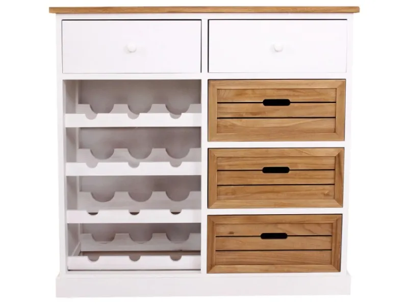 Die 12 Flaschenfächer bieten ausreichend Stauraum. Außerdem ist das Regal noch mit zwei Schubladen und drei herausnehmbaren Einlegekörbe ausgerüstet.