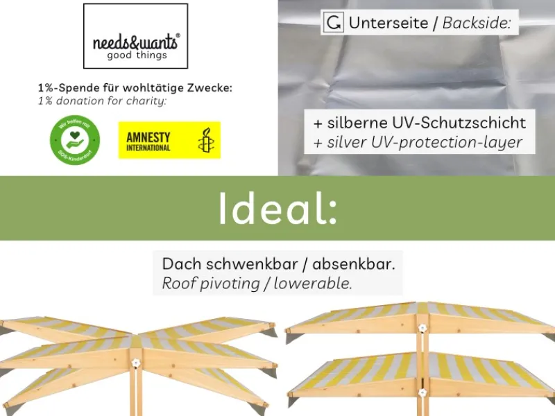 Hallo, ich bin „Sunplaya4“ aus der Familie „needs&wants“, Dein neuer Holzsandkasten mit Dach und Abd