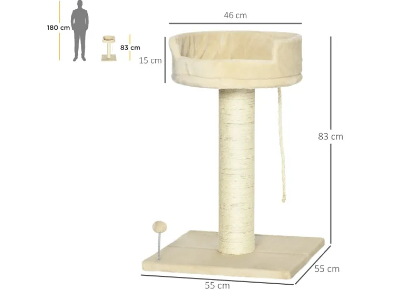 Clearance PawHut Kratzbaum 85 cm mit Liegefläche Plüsch-Kletterbaum Spielball
