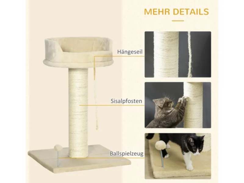 Ein beliebter Ort zum Spielen, Klettern und Ausruhen – dieser Katzenbaum von PawHut bietet alles, um Ihr Haustier zufriedenzustellen. Ihre Katze wird einen Kratzbaum haben, um ihre Krallen zu wetzen, während die verschiedenen Ebenen es ihr ermöglichen zu klettern. Außerdem gibt es einen Spielball und eine Schnur zum Spielen. Wenn sie müde ist, wird sie sich auf dem oberen Bett aus weichem Plüsch ausruhen können, um zu entspannen und ihre Umgebung zu beobachten.