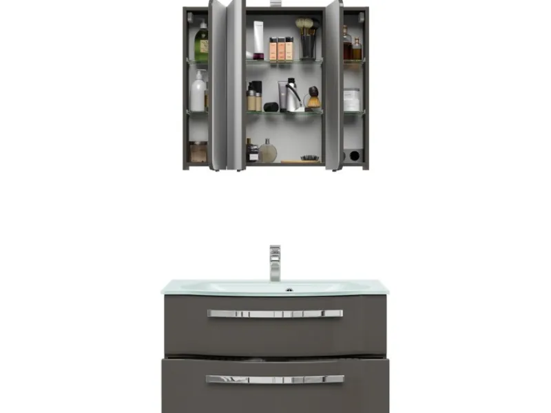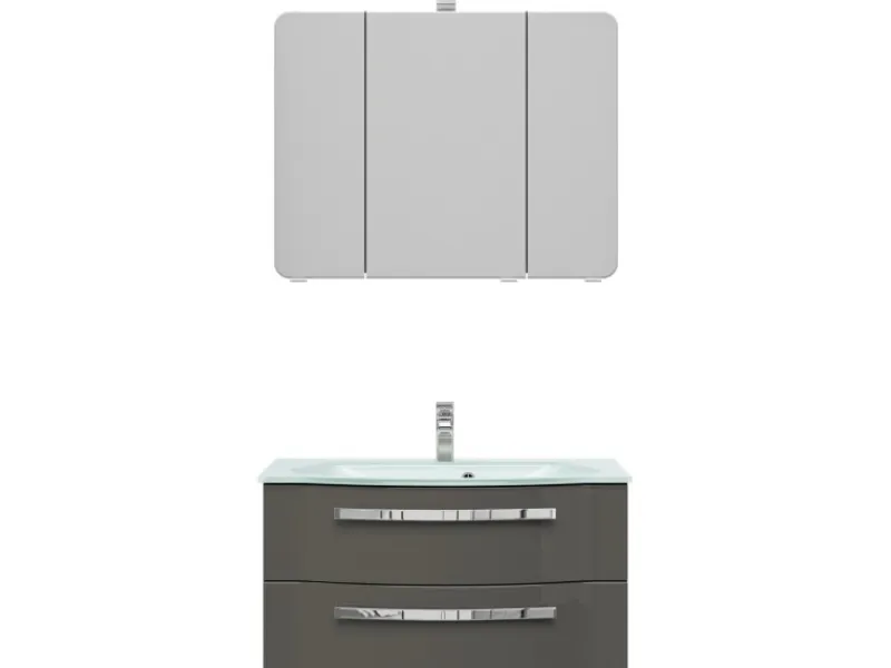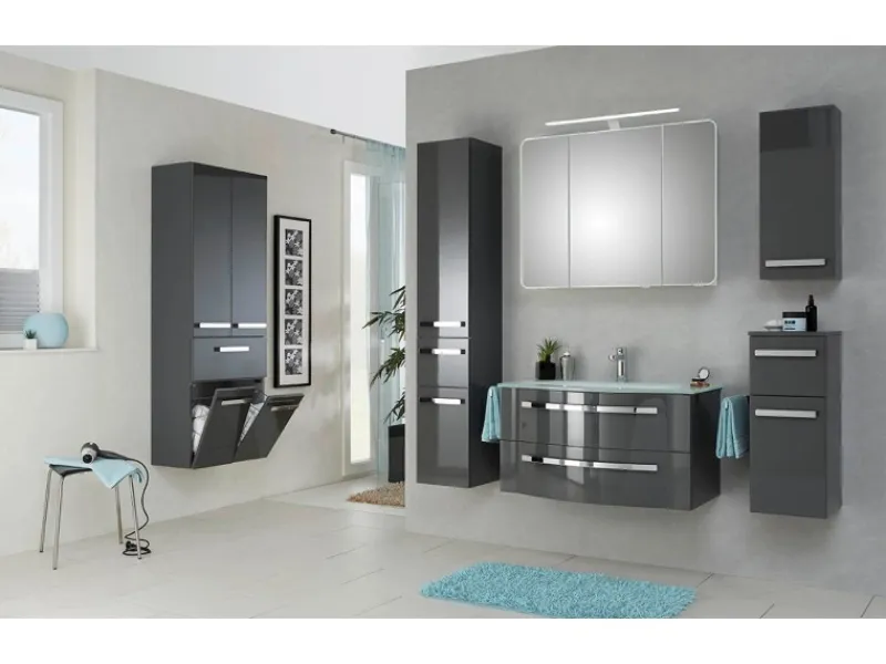 Modernes Badmöbel-Set mit pflegeleichten Hochglanz-Fronten in Steingrau
