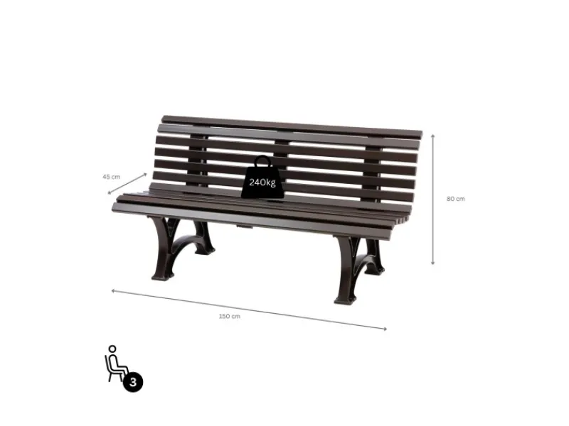 Clearance PROREGAL Gartenbank Jamaika 3 Sitzer HxBxT 80 x 150 x 64cm Witterungskunststoff & UV Beständiger Kunststoff Parkbank Sitzbank Braun