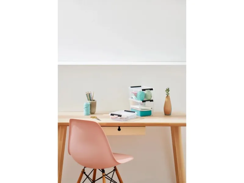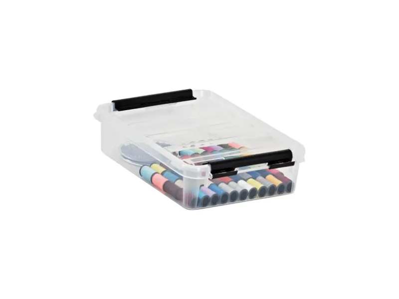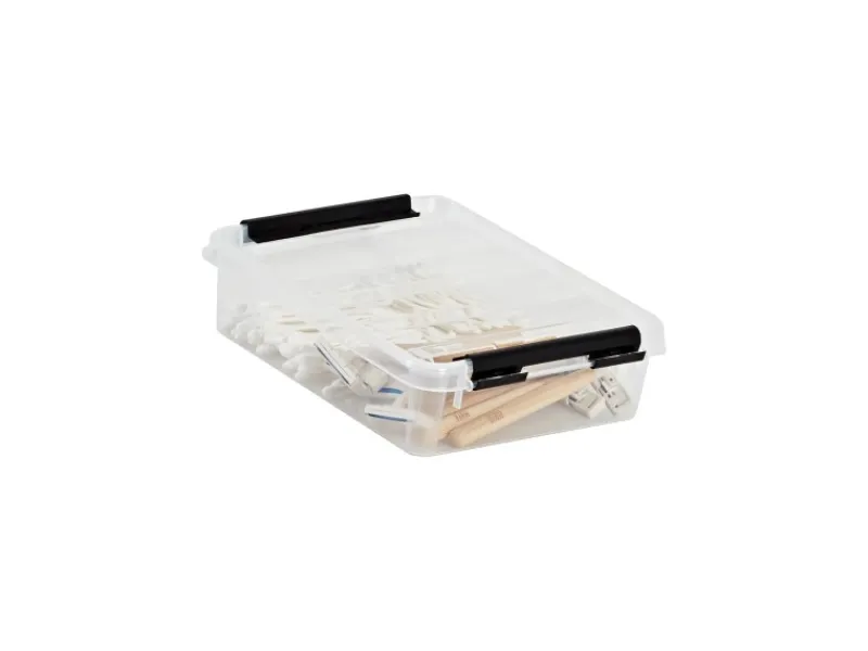 Diese 1-Liter-Box eignet sich perfekt zur Aufbewahrung von kleinen Gegenständen wie Kosmetika, Stiften, Buntstiften, Bürobedarf, Nähzubehör und Perlen. Das transparente Material erleichtert den Blick auf den Inhalt. Stabile Kunststoff-Clips sorgen für einen sicheren Verschluss des Deckels.