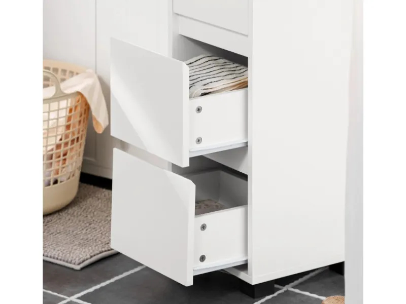Nicht nur als Badezimmerschrank, sondern auch als Beistellschrank in der Küche, im Schlafzimmer oder im Flur – ein kompakter Schrank, der Stauraum bietet.