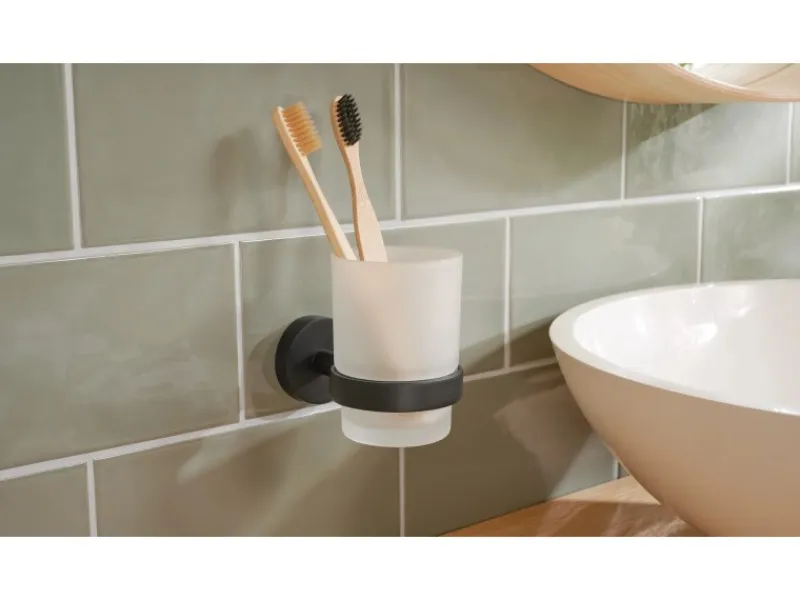 Clearance Tesa Moon Black Zahnputzbec. Halter Schwarz Matt Satiniertes Glas + Klebelösung