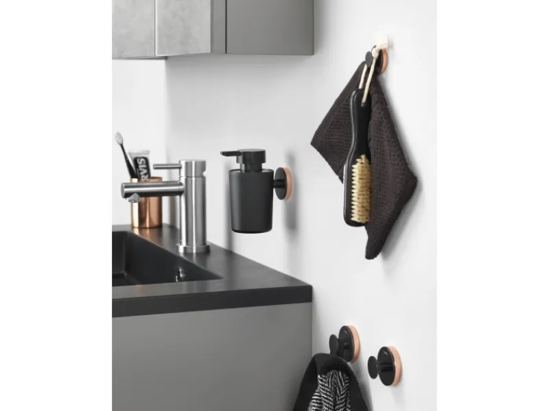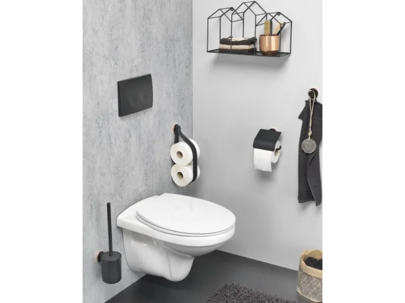 Die Serie Urban in trendigem Schwarz bietet modernes, industrielles Design. Individuellen Touch verleihen Sie den Accessoires mit den beigefügten Dekor-Ringen in Dunkelgrau oder Kupfer. Der Haken lässt sich einfach mittels der integrierten Klebefolie an der Wand befestigen.