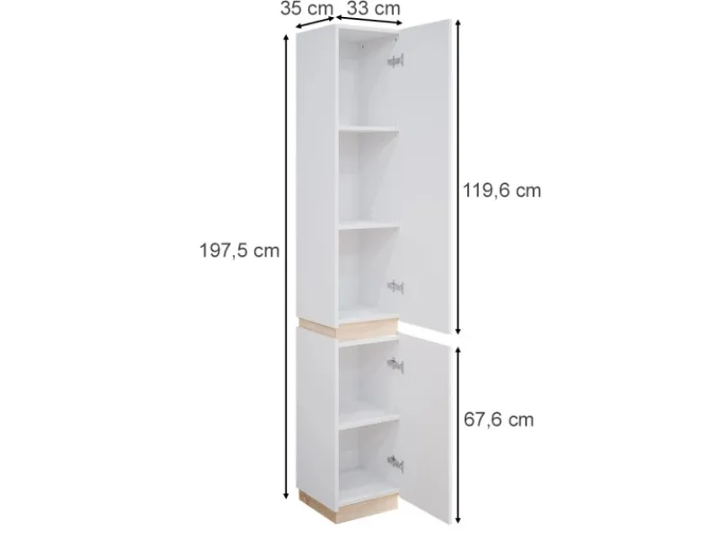 Wäscheschrank hat folgende Abmessungen: Breite: 33 Höhe: 197,5 Tiefe: 35