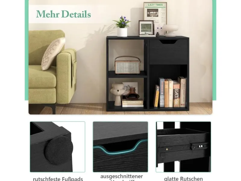 3 offene Regale und 1 Schublade bieten reichlich Stauraum