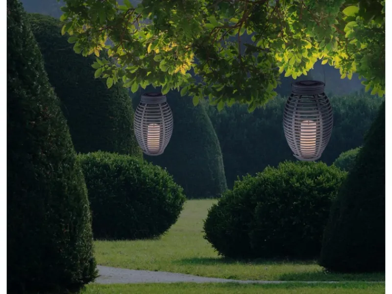 Die graue Globo LED-Solaraußenleuchte Laterne mit Feuereffekt Kunststoff in Rattanoptik verwandelt Ihr Zuhause in eine Wellnessoase der besonderen Art. Egal, ob stehend oder hängend, gibt diese 35 cm hohe Dekorationslampe ein romantisch flackerndes Licht ab und das bis zu 8 Stunden lang. Das angenehm warmweiße Licht von 3000 K lässt sich mit einem Schalter ein-/ausschalten. Mit dem Schutzgrad IP44 ist diese Solarlampe bestens für den Außenbereich geeignet.