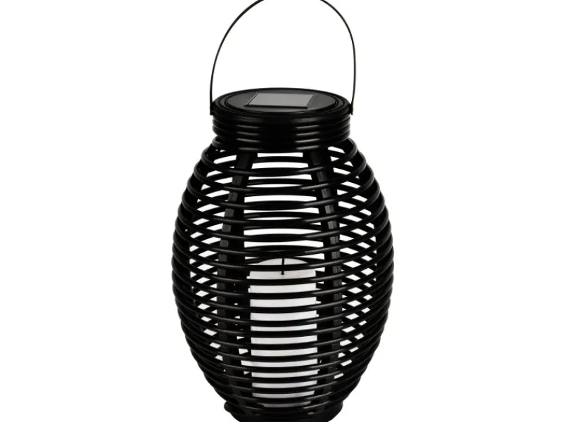 Discount Globo LED-Solaraußenleuchte Laterne mit Feuereffekt Kunststoff Grau Rattanoptik