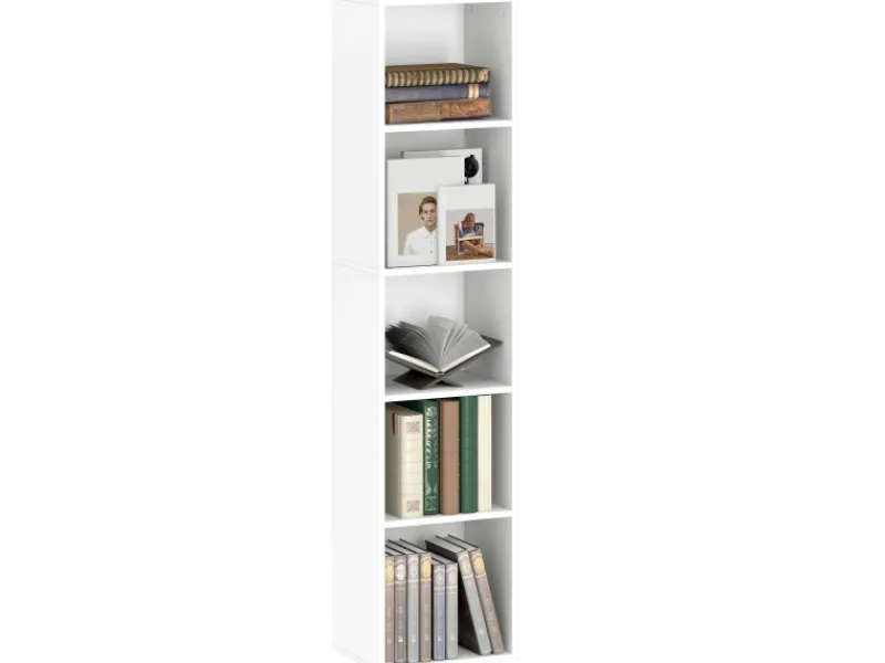 ● Fünf offene Fächer organisieren Bücher und Dekorationsartikel