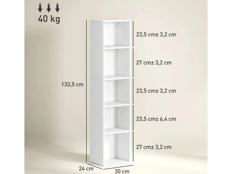 ● Belastbarkeit: 40 kg (gesamt), 8 kg (pro Regalboden)
