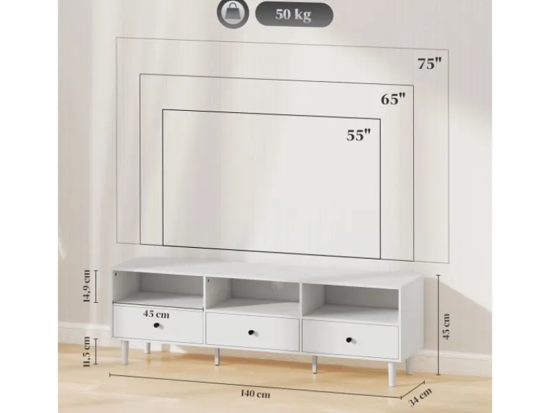 ● Geräumige Oberfläche geeignet für 55/65/75 Zoll Fernseher