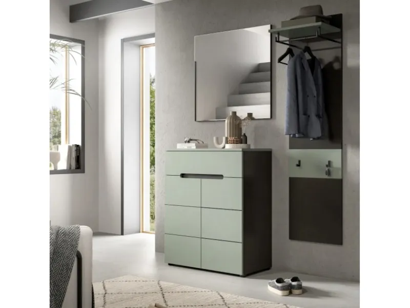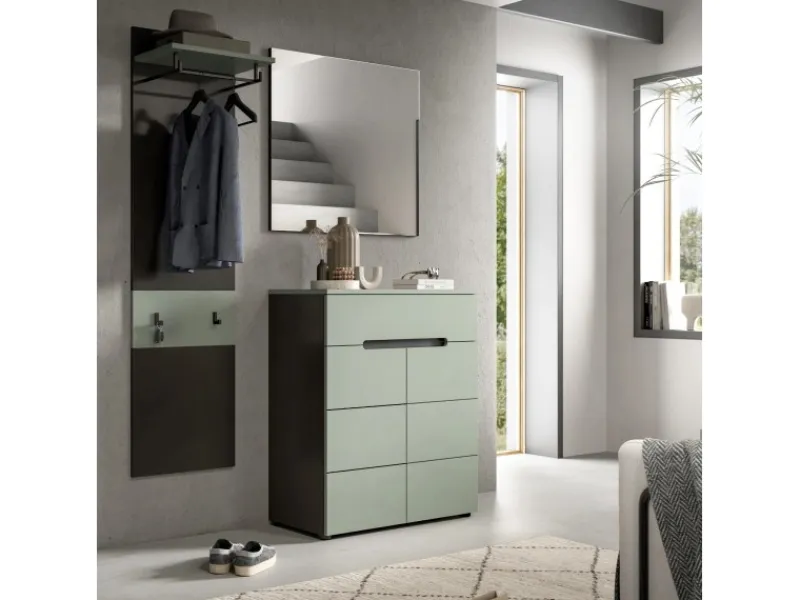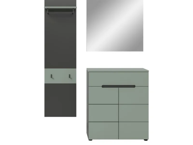 Garderobe „Cooper“ von Inn.Furn, 3-teilig, Salbei Grün / Basalt Grau
