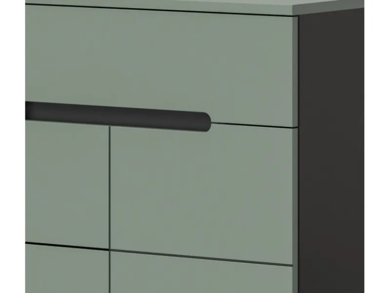 Das 3-teilige Garderoben Set Cooper kombiniert modernes Design mit funktionaler Ausstattung und passt perfekt in kleine Flure. Es besteht aus einer kompakten Schuhkommode, einem schmalen Garderobenpaneel mit Kleiderhaken, Kleiderstange und Hutablage sowie einem eleganten Spiegel. Mit zwei Türen, einem breiten Schubkasten mit Vollauszug und vier geschlossenen Fächern bietet die Garderobe praktischen Stauraum für Schuhe und Accessoires. Fronten und Oberböden in Salbei Grün setzen trendige Farbakzente, während der Korpus in Basalt Grau stilvolle Kontraste schafft. Soft-Close-Funktion und grifflose Fronten unterstreichen die moderne Optik.